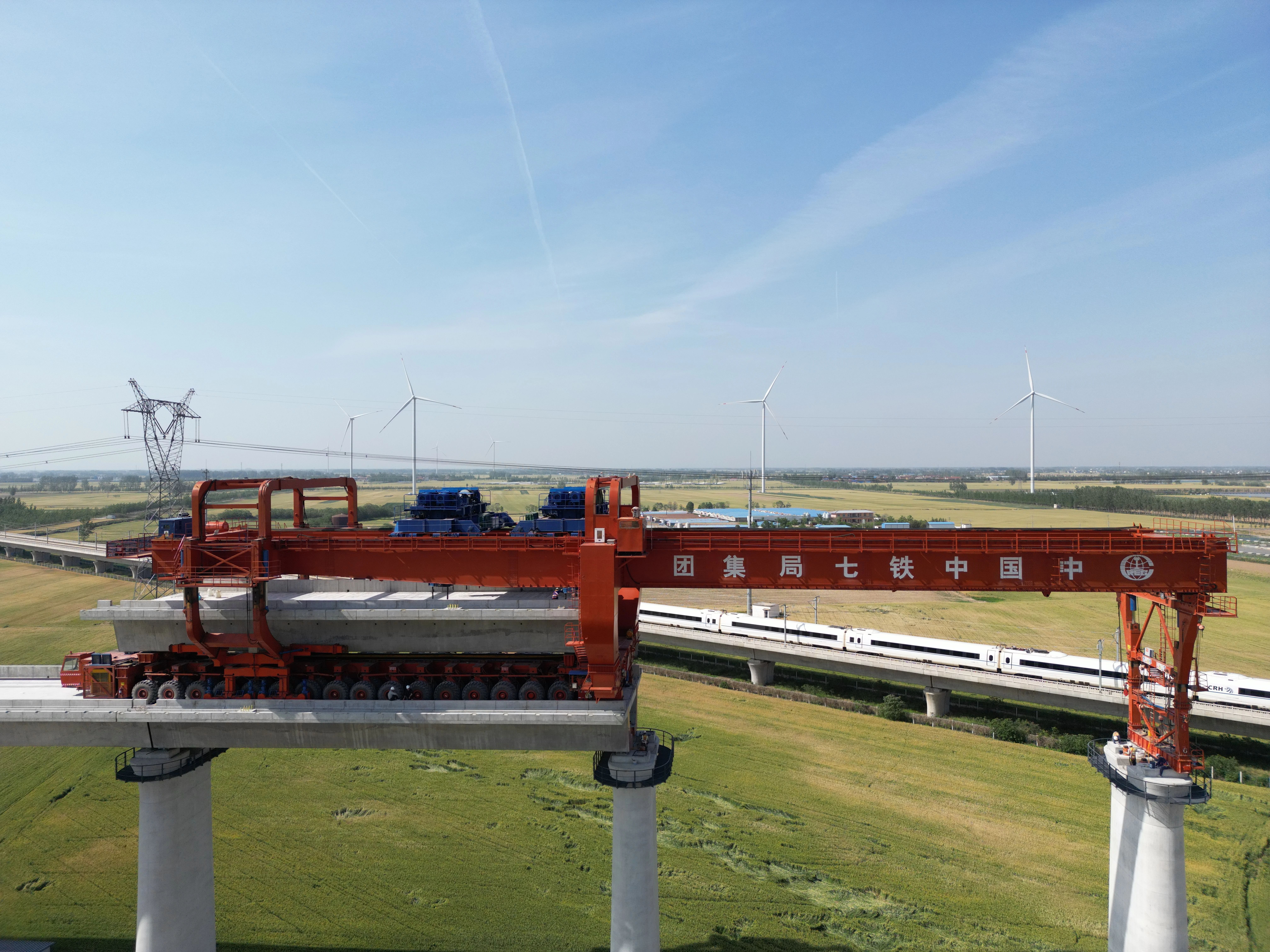 “旁邊就是鄭阜高鐵,為了保證施工中高鐵正常運行,我們先在支架模板中建好橋墩和連續(xù)梁,再通過大橋轉(zhuǎn)體的方式,讓平漯周高鐵從它上方一‘跨’而過。”王文科說話間,一列高鐵裹挾著熱風疾馳遠去。